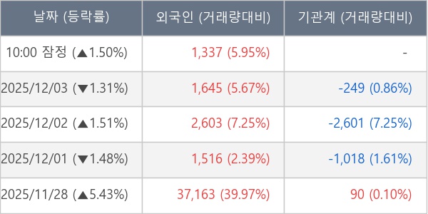 [표] 외국인ㆍ기관 순매매량 (단위 주)