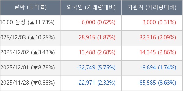 [장중수급포착] 큐리오시스, 외국인/기관 동시 순매수… 주가 +11.73%