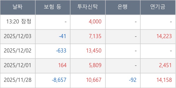 ※ 사모펀드 등 일부 기관의 순매매량은 표시되지 않음