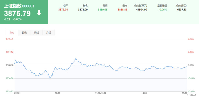 상하이종합지수 3875.79(-2.21, -0.06%)