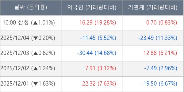 ※ 사모펀드 등 일부 기관의 순매매량은 표시되지 않음