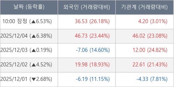 ※ 사모펀드 등 일부 기관의 순매매량은 표시되지 않음