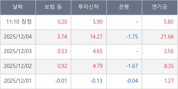 [표] 주요 기관별 순매매량 (단위 만주)