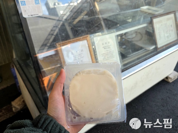 [오사카=뉴스핌] 김기랑 기자 = 일본 오사카 내 두부가게 '시마즈야'의 대표 상품 '오보로 두부'. 2025.12.16 rang@newspim.com