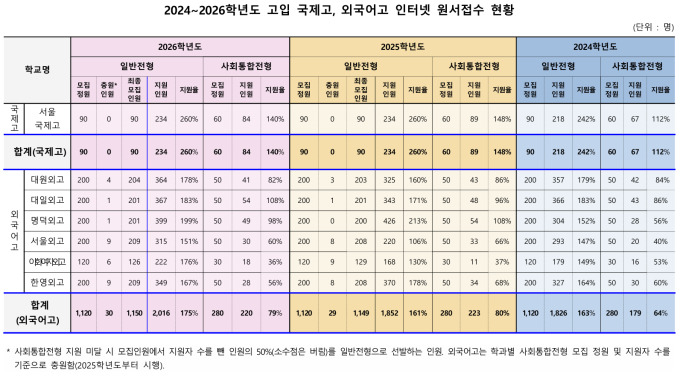 [서울=뉴스핌] 황혜영 인턴기자 = 2024~2026학년도 고입 국제고, 외국어고 인터넷 원서접수 현황. [사진=서울시교육청] 2025.12.05 hyeng0@newspim.com