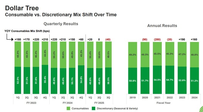 달러트리의 소비재 vs 임의 소비재 믹스 추이 [자료 = 업체 홈페이지]