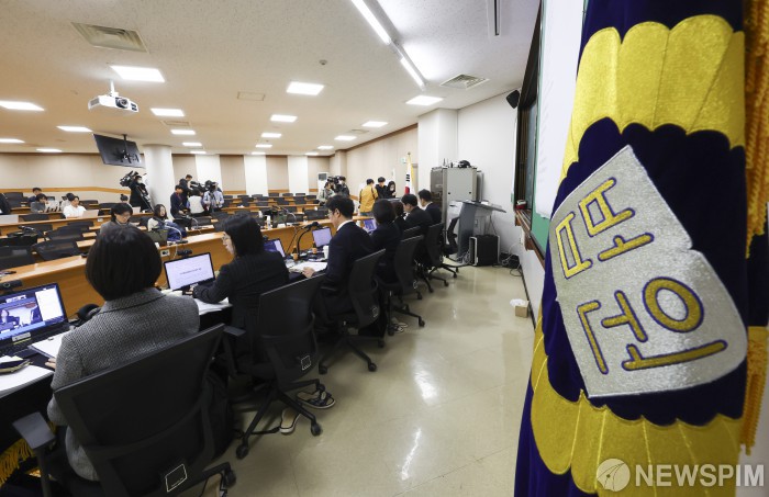 [고양=뉴스핌] 김학선 기자 = 8일 오전 경기 고양시 사법연수원에서 전국법관대표회의가 열리고 있다. 이날 전국 법관 대표들은 내란전담 재판부 설치와 법왜곡죄 도입 등 여당이 추진하는 사법개혁안에 대해 공식 입장을 표명할 지 등에 대해 논의한다. 2025.12.08 yooksa@newspim.com