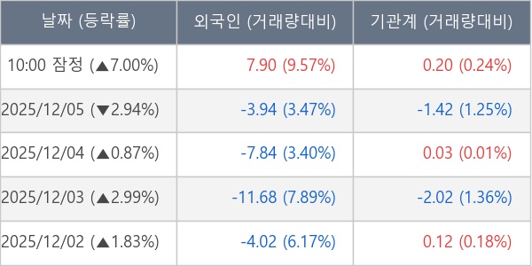 [장중수급포착] 티로보틱스, 외국인/기관 동시 순매수… 주가 +7.00%