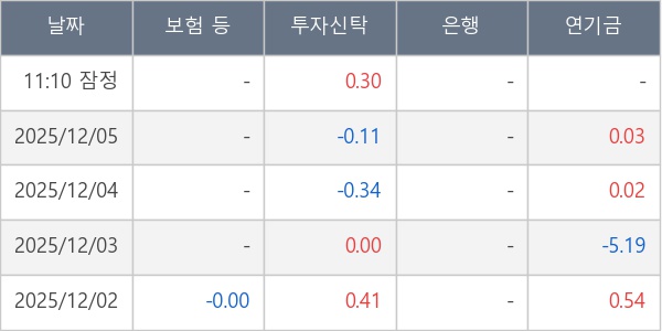 [표] 주요 기관별 순매매량 (단위 만주)