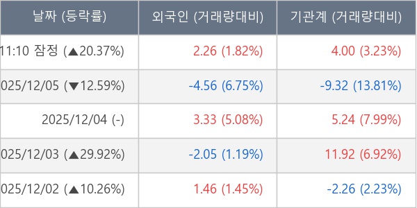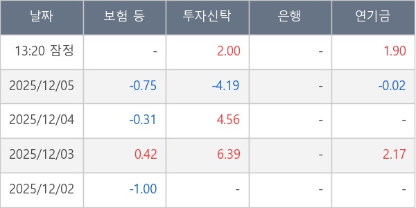 [표] 주요 기관별 순매매량 (단위 만주)