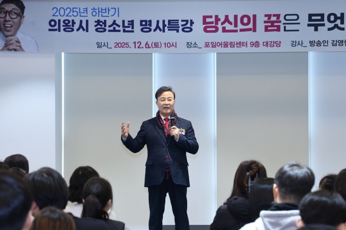 [의왕=뉴스핌] 박승봉 기자 = 경기 의왕시 진로진학상담센터는 지난 6일 의왕시 포일어울림센터 9층 대강당에서 청소년과 학부모를 대상으로 한 '2025 하반기 의왕시 청소년 명사 특강'을 성황리에 마쳤다고 8일 밝혔다.