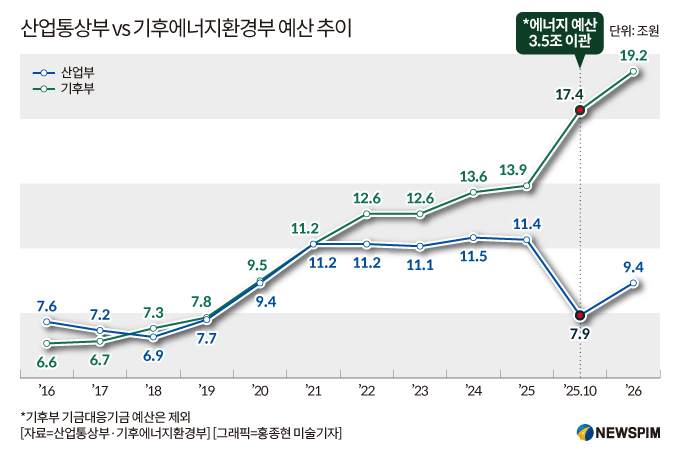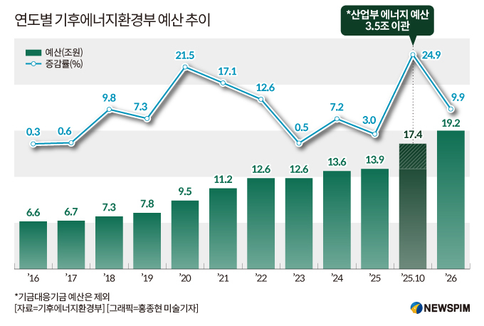 에너지 예산 3.5조원을 넘겨받은 기후부는 내년도 예산이 20조원에 근접한 규모로 덩치가 커졌다.