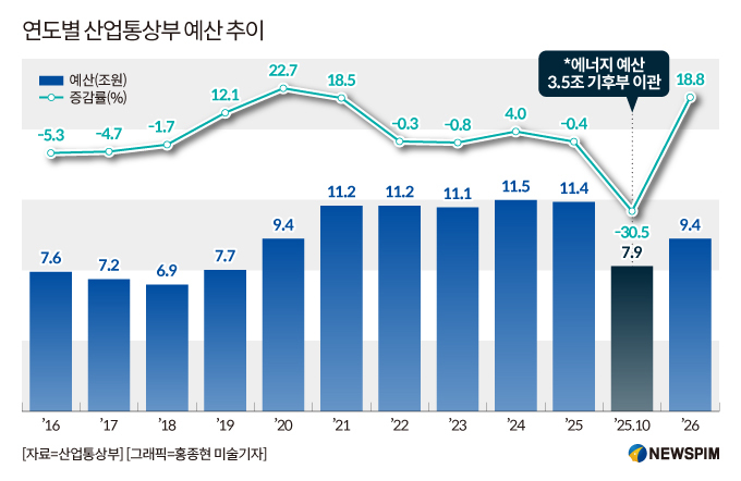 ◆ '에너지' 빼앗긴 산업부, 예산도 싹둑…6년 만에 9조원대 추락