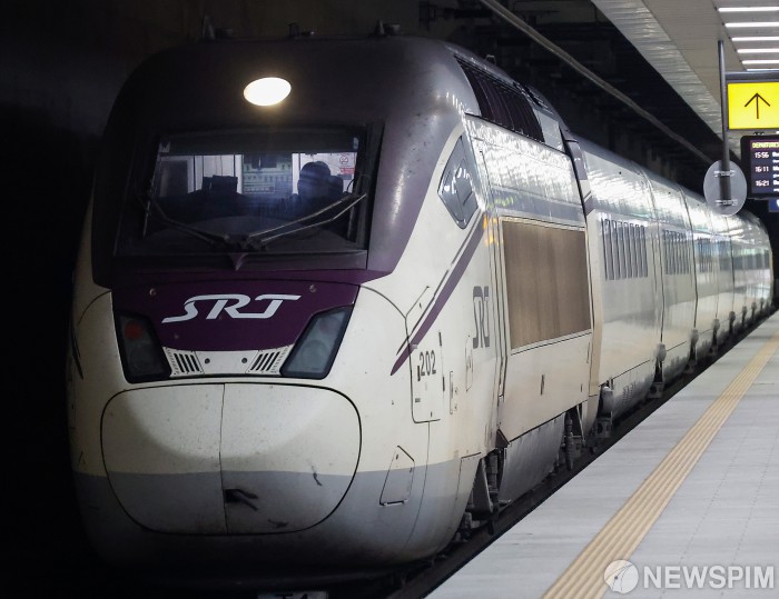 [서울=뉴스핌] 류기찬 기자 = 8일 오후 수서역에서 SRT 열차가 플렛폼을 나서고 있다. 국토교통부는 수서역 SRT의 좌석 부족 문제를 해결하기 위해 내년 3월부터 서울발 KTX와 수서발 SRT 교차 운행을 추진하기로 했다. 2025.12.08 ryuchan0925@newspim.com