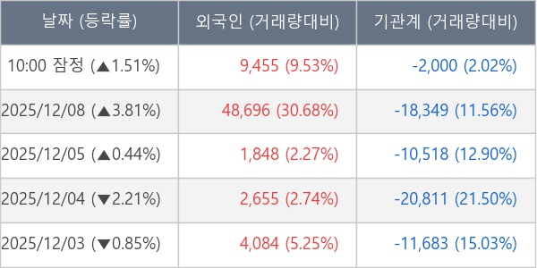 ※ 사모펀드 등 일부 기관의 순매매량은 표시되지 않음