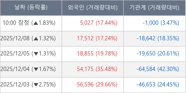 ※ 사모펀드 등 일부 기관의 순매매량은 표시되지 않음