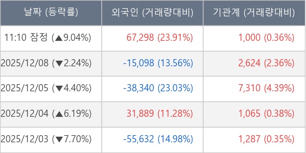 ※ 사모펀드 등 일부 기관의 순매매량은 표시되지 않음
