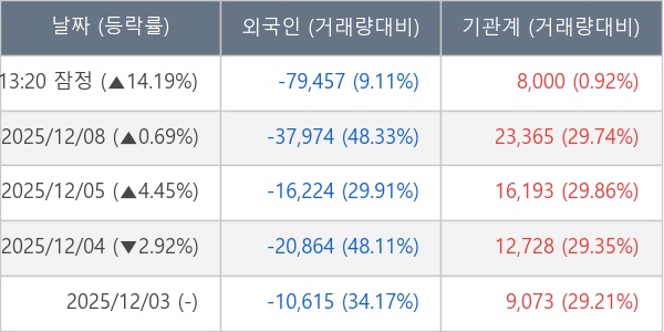※ 사모펀드 등 일부 기관의 순매매량은 표시되지 않음