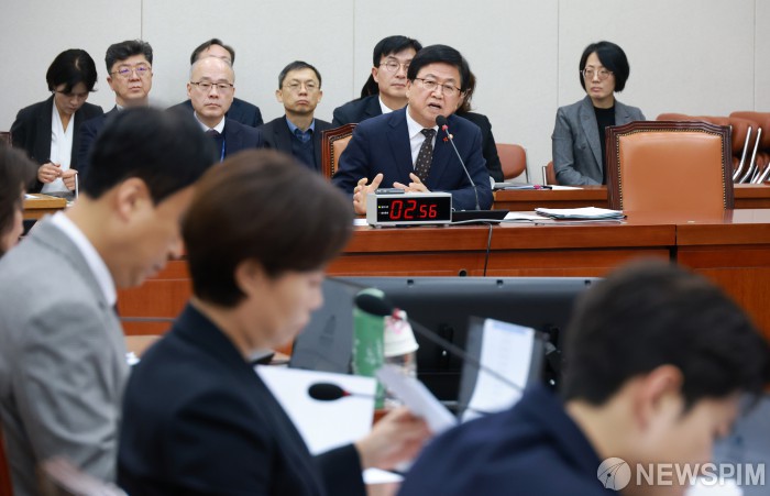 [서울=뉴스핌] 정일구 기자 = 최교진 교육부 장관이 9일 오전 서울 여의도 국회에서 열린 교육위원회 전체회의에서 의원 질의에 답하고 있다. 2025.12.09 mironj19@newspim.com
