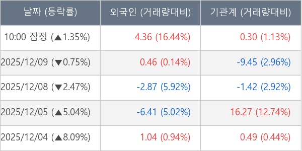 ※ 사모펀드 등 일부 기관의 순매매량은 표시되지 않음