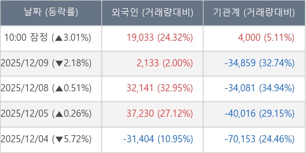 ※ 사모펀드 등 일부 기관의 순매매량은 표시되지 않음