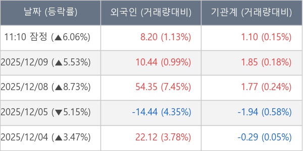 [장중수급포착] 클로봇, 외국인/기관 동시 순매수… 주가 +6.06%