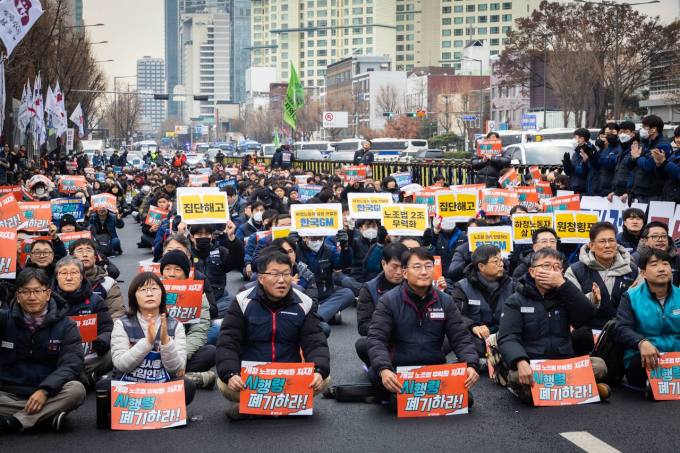 민주노총은 이날 집회에서 "고용노동부와 이재명 정부는 노란봉투법(노조법) 시행령을 폐기하라"며 "시행령 개정에 나설 것을 촉구한다"고 했다.