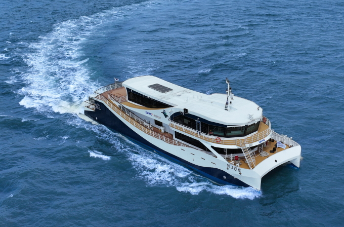 이번에 취항하는 e-그린호는 총톤수 309톤, 길이 40m, 폭 11m 규모의 2층 구조 쌍동선(Catamaran)으로, 기존 안내선 대비 약 2배 커진 규모를 자랑한다.