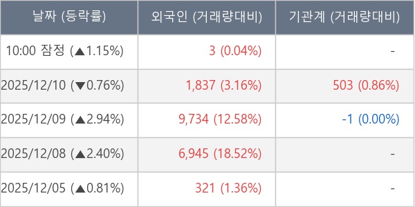[표] 외국인ㆍ기관 순매매량 (단위 주)
