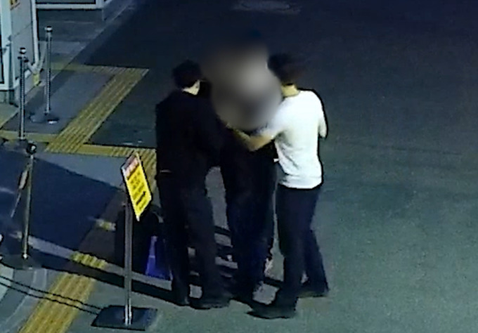 현금을 건네받던 보이스피싱 현금 수거책이 경찰에 의해 검거되는 모습. [사진=대전경찰청] 2025.12.11 jongwon3454@newspim.com