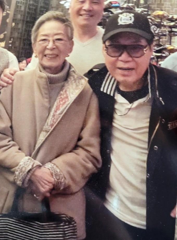 [서울=뉴스핌] 오광수 문화전문기자 = 배우 김지미(왼쪽)와 가수 조영남이 지난해 3월 미 로스앤젤레스 '쎄시봉' 공연장에서 만나 담소를 나눈 뒤 기념 촬영을 했다. [사진 = 조영남] 2025.12.11 oks34@newspim.com