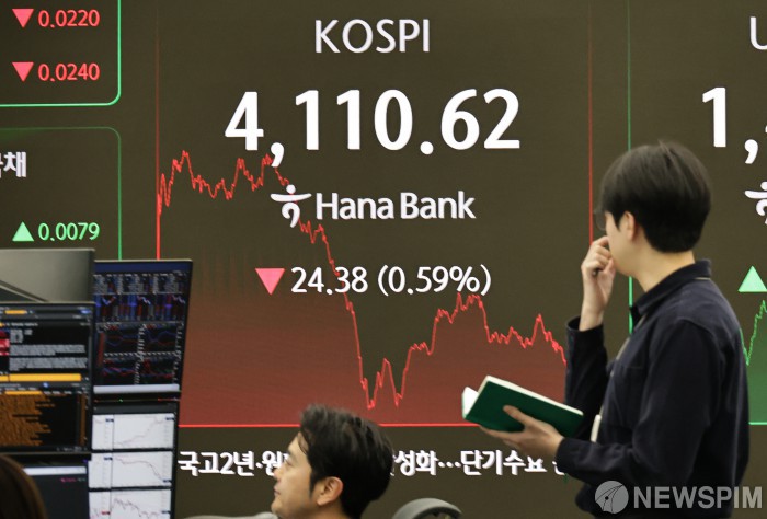 [서울=뉴스핌] 양윤모 기자 = 11일 오후 코스피가 전장 종가보다 24.38 포인트(0.59%) 하락하며 4110.62로, 코스닥은 0.36 포인트(0.04%) 하락한 934.64로 장을 마감한 가운데, 서울 중구 하나은행 딜링룸에서 직원들이 업무를 보고 있다. 서울외환시장에서 달러/원 환율은 전장 대비 2.00원 상승한 1472.40원에 주간거래를 마감했다. 2025.12.11 yym58@newspim.com