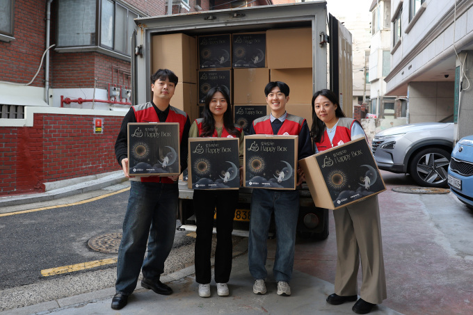 이번 '해피박스'는 영유아 양육 환경을 세심하게 고려해 적외선 귀체온계, 담요, 아기 간식, 기저귀 파우치 등 아기용품과 기초 화장품 등 부모용품으로 구성했다. 특히 기저귀 파우치는 100여명의 임직원이 자발적으로 제작에 동참하며 나눔의 의미를 더했다. 또 사내 주니어보드 구성원들이 해피박스 포장 및 물품 전달 활동에 동참하는 등 임직원의 폭넓은 참여를 바탕으로 행사가 진행됐다.