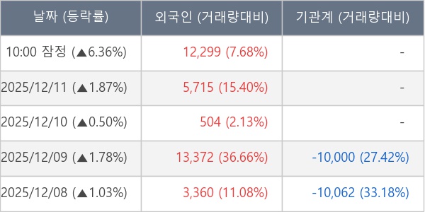 [서울=뉴스핌] 로보뉴스 = 12일 10시 15분 현재 컨텍(451760)은 전일 대비 6.36% (현재가 8,700원) 상승했고, 외국인이 최근 6일 연속 순매수(누적 39,768주, 잠정) 행진을 하고 있다.