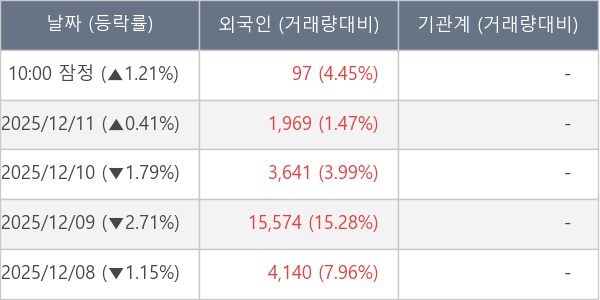 [표] 외국인ㆍ기관 순매매량 (단위 주)