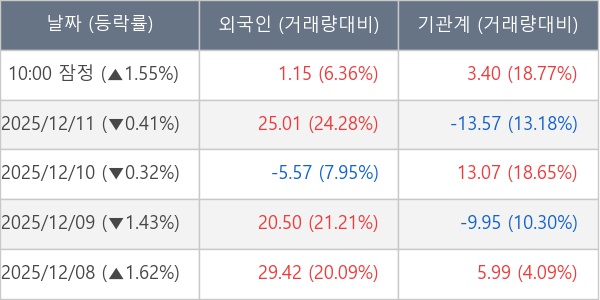 ※ 사모펀드 등 일부 기관의 순매매량은 표시되지 않음