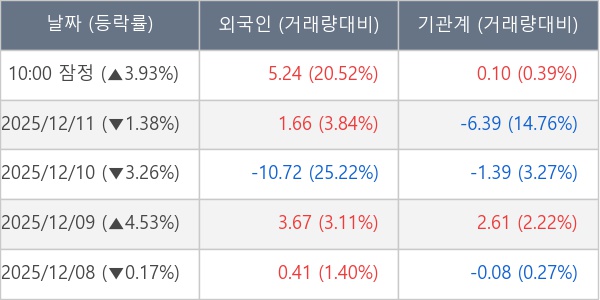 [표] 외국인ㆍ기관 순매매량 (단위 만주)