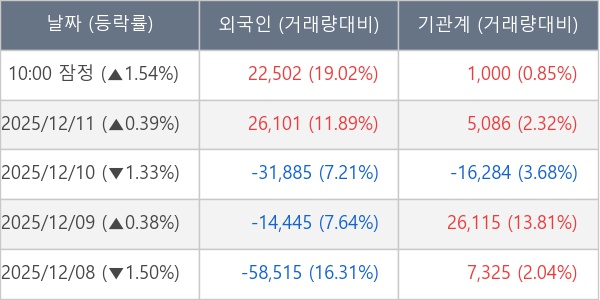※ 사모펀드 등 일부 기관의 순매매량은 표시되지 않음