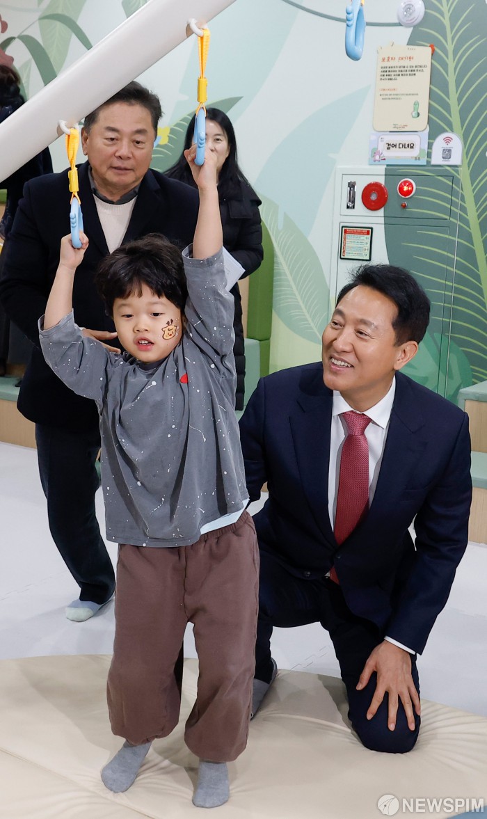 [서울=뉴스핌] 류기찬 기자 = 오세훈 서울시장이 12일 오후 서울 강서구 서울키즈플라자에서 열린 ‘서울키즈플라자 개관식’에서 어린이들과 함께 놀이시설을 체험하고 있다. 서울 키즈플라자는 놀이, 돌봄, 마음건강 기능을 한 건물 안에 집약시킨 통합 거점 시설로, 지역 내 어린이 시설 등과 유기적으로 연계해 아이들의 건강한 성장을 지원하고 부모의 양육 부담을 덜어주는 공간이다. 2025.12.12 ryuchan0925@newspim.com