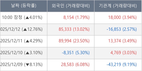 [장중수급포착] 이노스페이스, 외국인/기관 동시 순매수… 주가 +4.01%