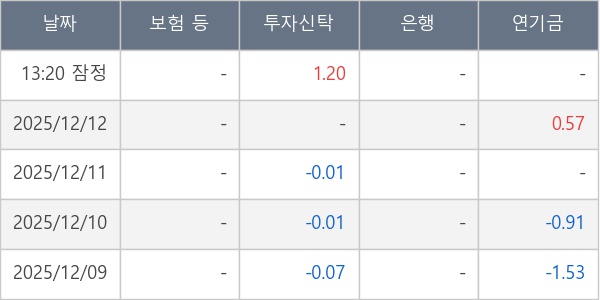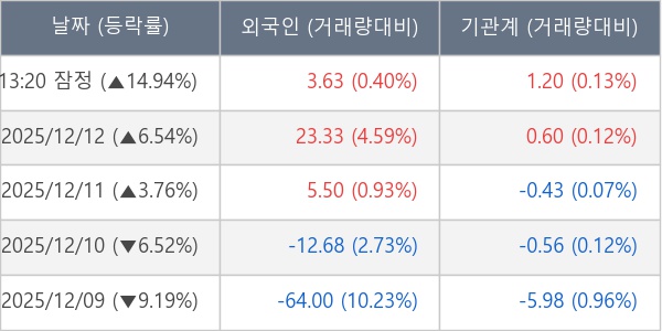 ※ 사모펀드 등 일부 기관의 순매매량은 표시되지 않음