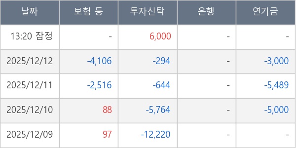 ※ 사모펀드 등 일부 기관의 순매매량은 표시되지 않음