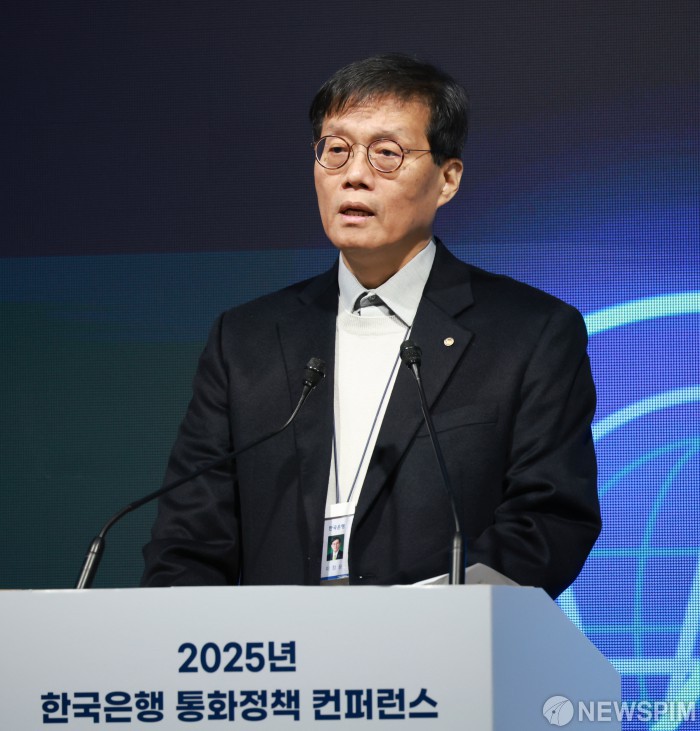 [서울=뉴스핌] 이창용 한국은행 총재가 15일 서울 중구 한국은행에서 열린 2025년 한국은행 통화정책 콘퍼런스에서 환영사를 하고 있다. [사진=한국은행] 2025.12.15 photo@newspim.com