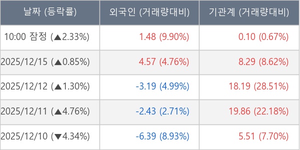 ※ 사모펀드 등 일부 기관의 순매매량은 표시되지 않음