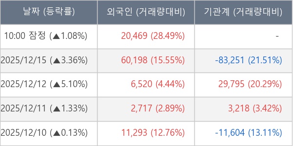 [표] 외국인ㆍ기관 순매매량 (단위 주)