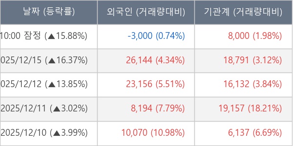 [장중수급포착] 액트로, 기관 5일 연속 순매수행진... 주가 +15.88%