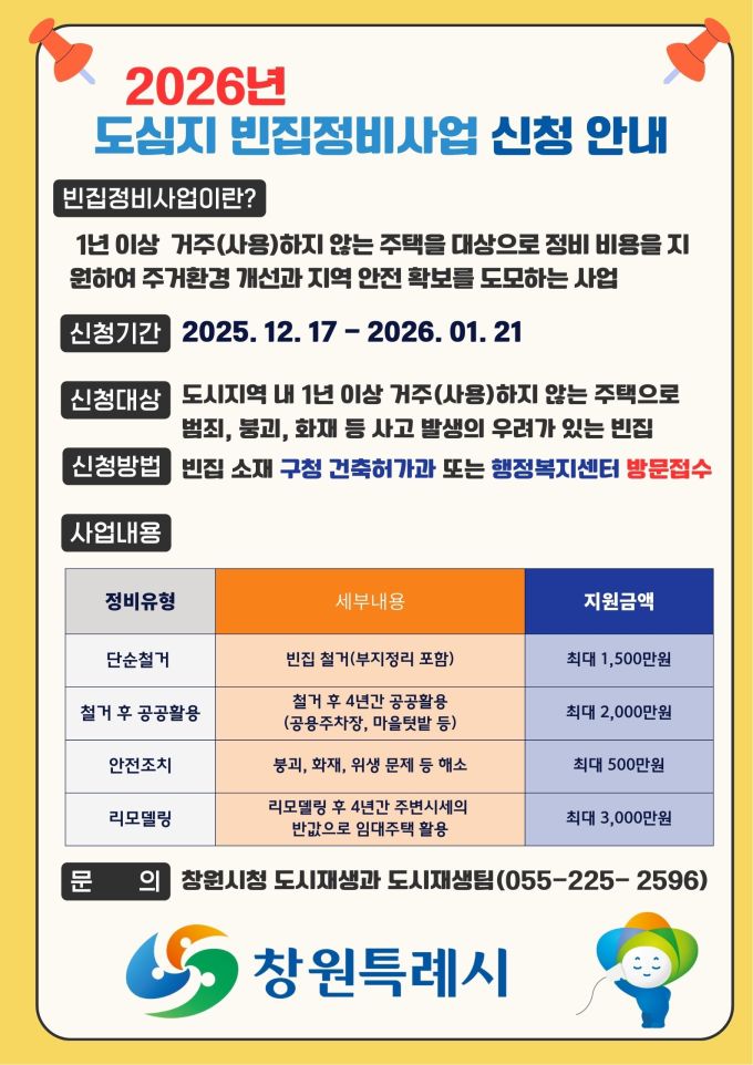 경남 창원시 2026년 도심지 빈집정비사업 대상자 모집 포스터 [사진=창원시] 2025.12.16