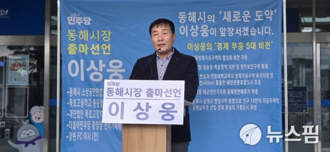 [동해=뉴스핌] 이형섭 기자 = 이상웅 전 동해시소상공인연합회장이 내년 동해시장 선거 출마를 공식 선언하고 '경제 부흥 5대 비전'을 중심으로 한 동해시 대전환 구상을 발표했다.