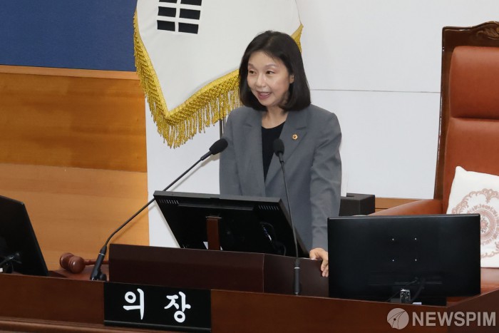 [서울=뉴스핌] 양윤모 기자 = 최호정 서울시의회 의장이 11일 오전 시의회 본회의장에서 열린 '제331회 정례회 제2차 본회의' 개회를 선언하고 있다. 2025.06.11 yym58@newspim.com