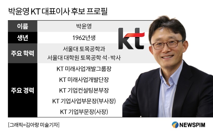 [서울=뉴스핌] 김신영 기자 = KT 이사회가 차기 대표이사(CEO) 최종 후보로 KT에서 30년 넘게 근무한 박윤영 전 KT 기업부문장(사장)을 확정했다.